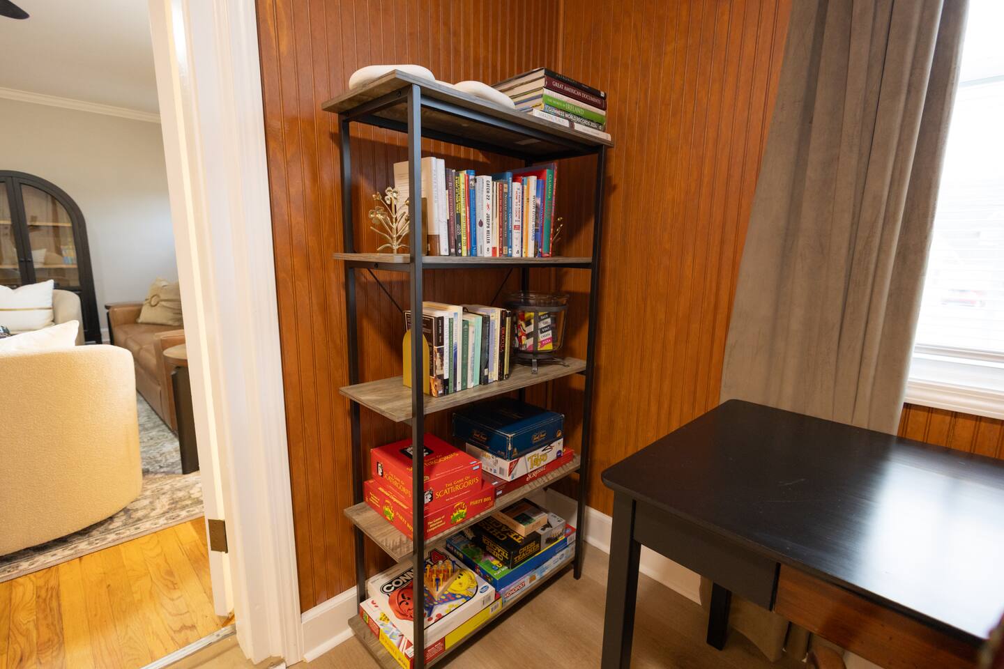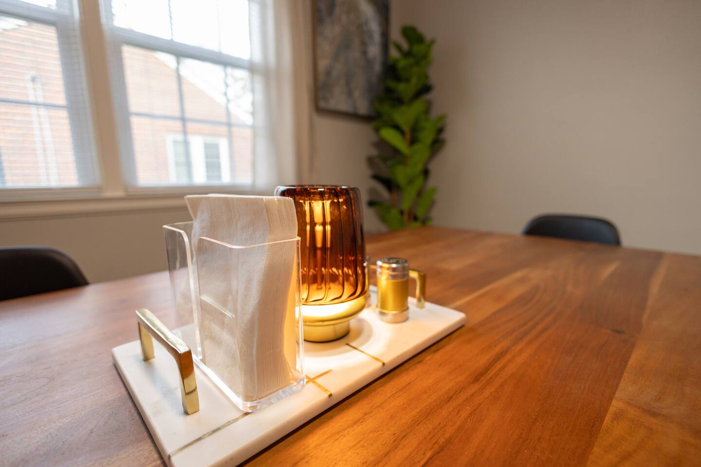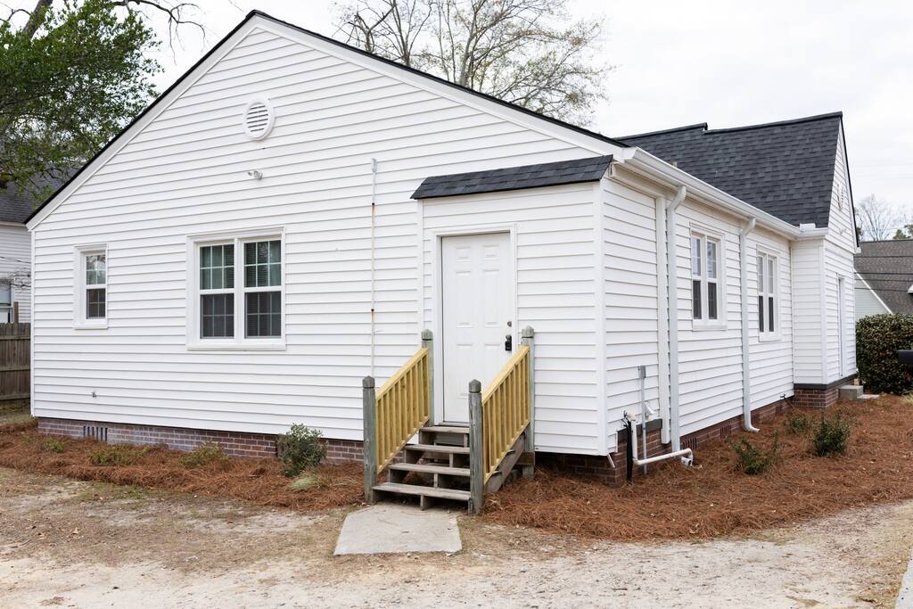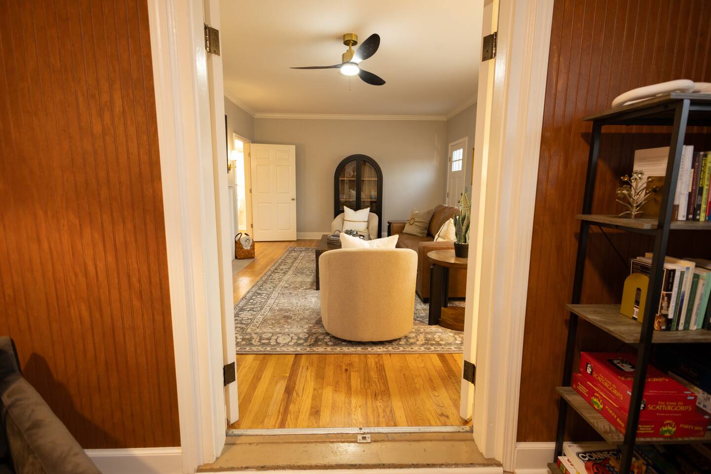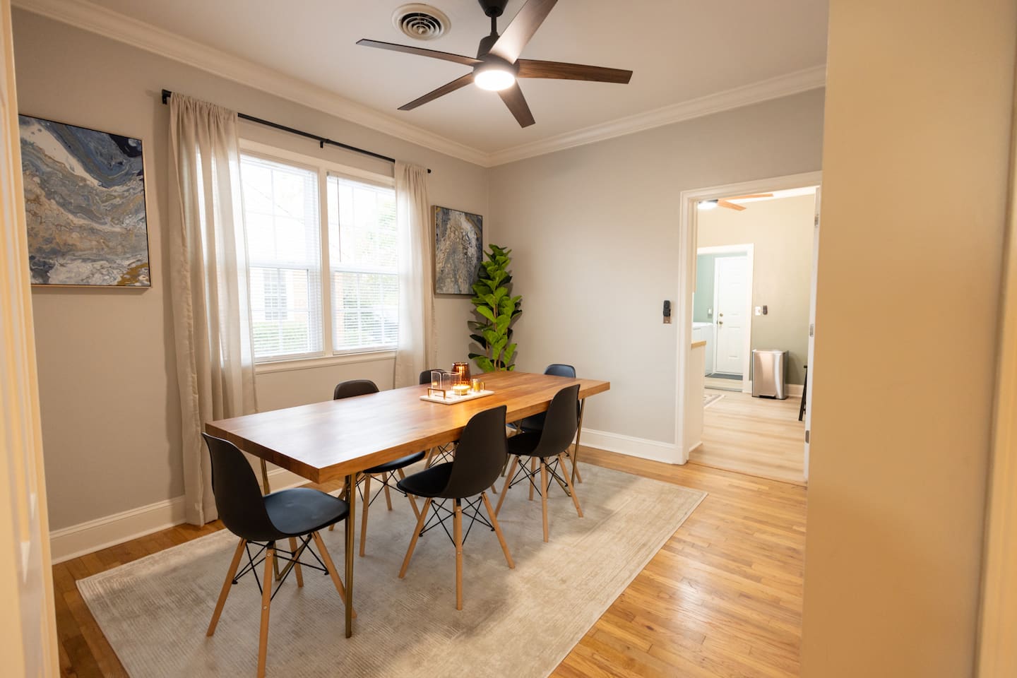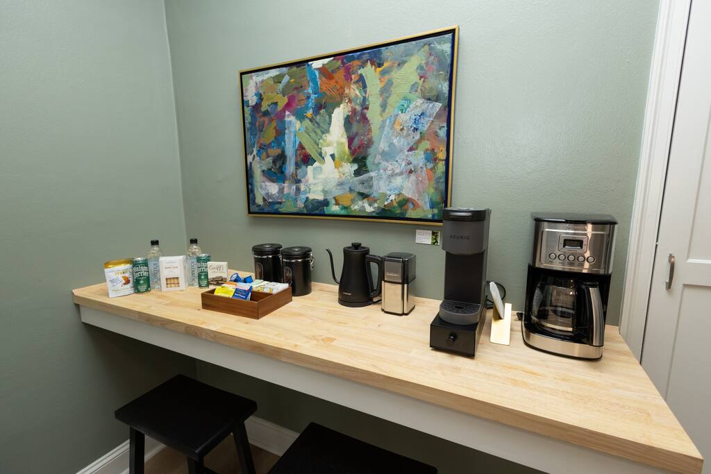 **The Home** This thoughtfully renovated house blends historic character with modern comfort and space to spread out. Features include: 3 bedrooms all with blackout curtains and smart TVs 2.5 bathrooms Dedicated office/workspace with reading nook Comfortable living room furnished by local vendors and a 70- inch smart TV Fully equipped kitchen with coffee bar Dining room for shared meals Washer & dryer Paintings by local artists Lachele Yancey, Ruthie McKenzie, and Debbie Parker Sound Machine Nintendo Switch and Games DVD Player and Selection of DVDs Card Games, Board Games, and Books Pack and Play Charcoal Grill Fire Pit Free Parking Whether you’re working remotely, traveling with family, or just need room to breathe, the layout is both functional and inviting.